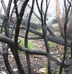 Previously I had learned that these possible routes through surrounding steeps were not quite as vertical as they appeared when you actually started climbing up. This one looked long and very steep, especially the top part. Stage 1. Charlie had taken a nasty tumble in this hostile sort of terrain. I spied out discontinuous runs that were partly vegetated – these stones had been stable long enough for plants to grow around them and so made reliable steps. I linked a few of these then when they ran out I took to the lines of larger rocks – these are most often more stable, but when unstable the consequences are greater. I moved to the right hand side where larger stones met the bush edge then back to the middle and then back right. Up and up. On the smaller rocks it was a matter of moving up quicker than the stones flowed down. There is mostly a strange sense of equilibrium on some “slides” where the rocks have come to rest and when they slide away they don’t go far. I guess the steeper ones, and particularly collapsing moraine walls, are often too vertical to be negotiable. As I approached a narrowing towards the top with a slight sense of vertiginous instability due to a subtle steepening of the angle I was able to crab walk gingerly across to a scrubby gully on the left.