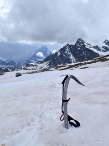 I sought out the gravelly runs and slipskied down mostly in control. Walking poles became ski poles. Then the larger stones that didn’t move were more laborious, slower. A fraction of the time. 2.00pm at the base.